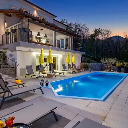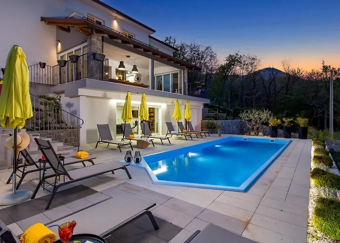 この浴室5室の別荘はリエカ空港から50㎞圏内で、乙女とカモメの彫像などの文化的名所から車で10分以内です。 リド・ビーチ・オパティアから3.8km離れた所にあります。